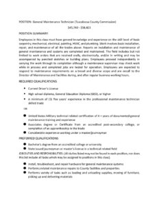 General Maintenance Technician Job Description