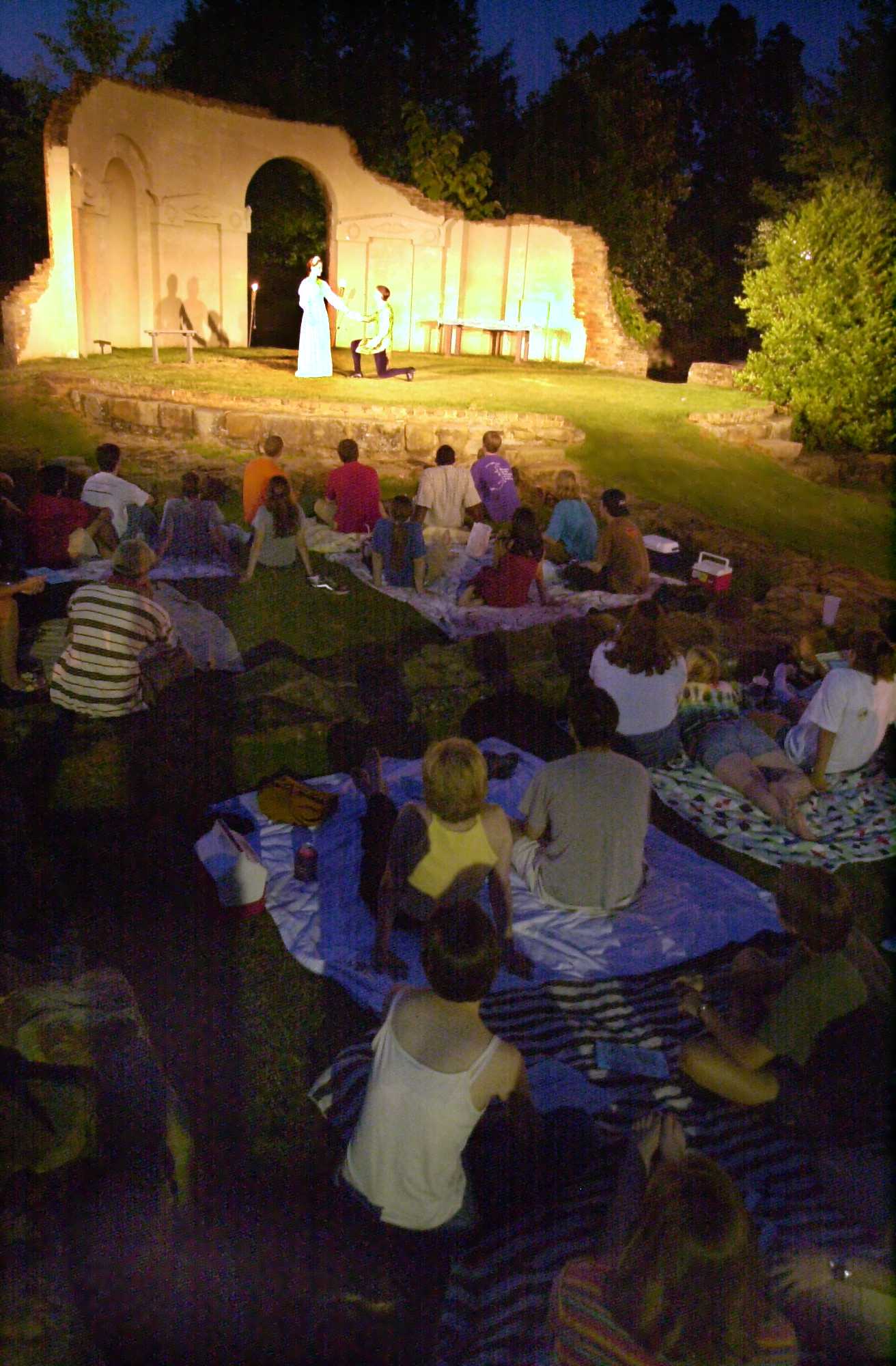 8-19-00–Tuscaloosa, AL–William Shakespear’s A Mid Summer Night’s Dream is performed in Capitol Park by the University of Alabama chapter of Alpha Psi Omega, a national honorary fraternity for the dramatics. Director and President of the fraternity, Sarah Roach, chose the park as a break from in-door theatre. Sunday is the final night of the completely student run production. The show starts at 8 p.m.(Michael Palmer/Tuscaloosa News)